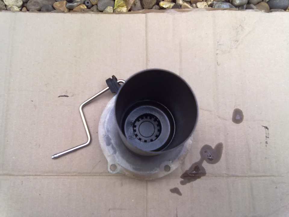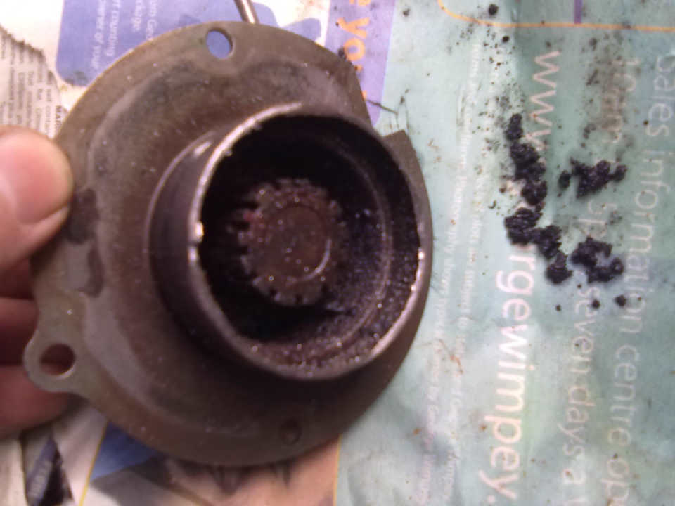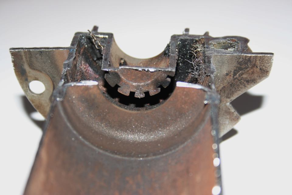 Disintegrating mesh and extremely solid carbon deposits. It also shows why mechanical cleaning cannot clean the insides of the burner. This burner was possibly already starting to fail which could explain why it was sold on Ebay.
