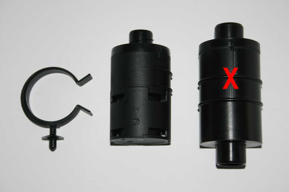 Two combustion air inlet silencers. Webasto filter on the left fits 22 mm tubing and came with a mounting clamp.