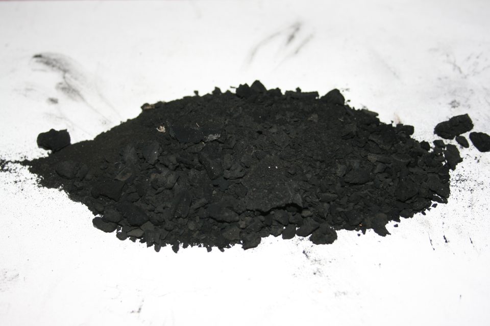 Another shot of the D1LCC carbon. This photo included a few large bits that fell out of the exhaust pipe. The central pile was about 7 inches wide.