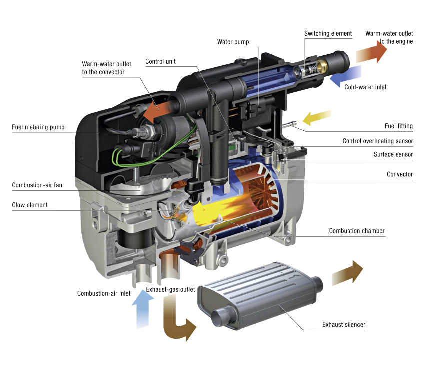 The water and fuel pumps are external to the heater on some heaters and are not shown in this model.