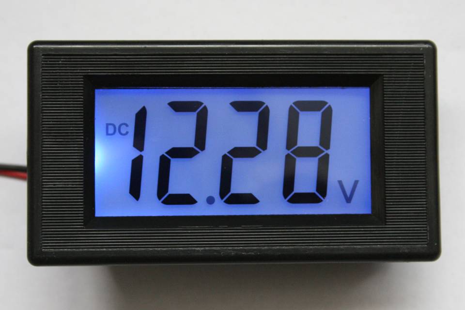 In April 2011 I bought a dedicated voltmeter, described on Ebay as Blue LCD Digital Voltmeter 20v, for under £4 including pp. No separate power is needed, it takes power from the supply being measured. Working range: 7-