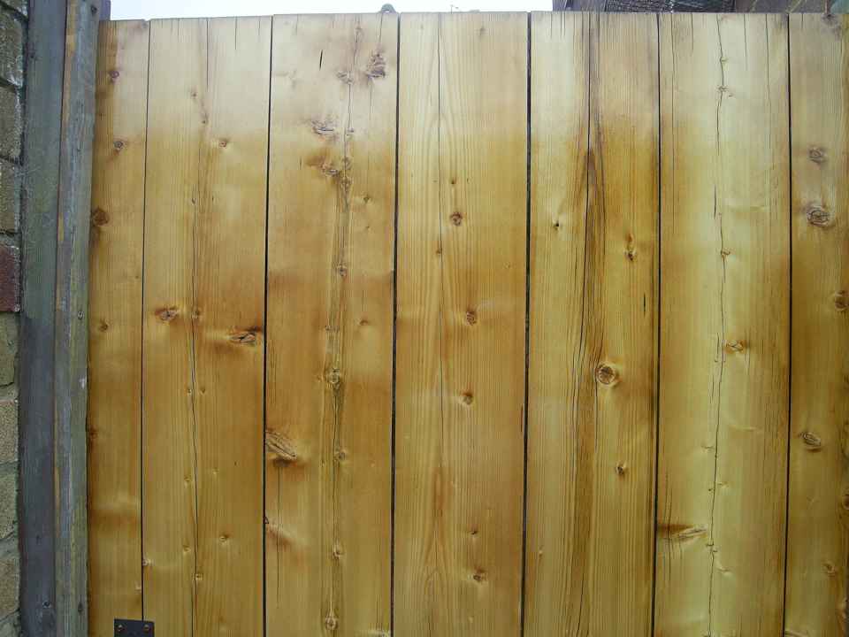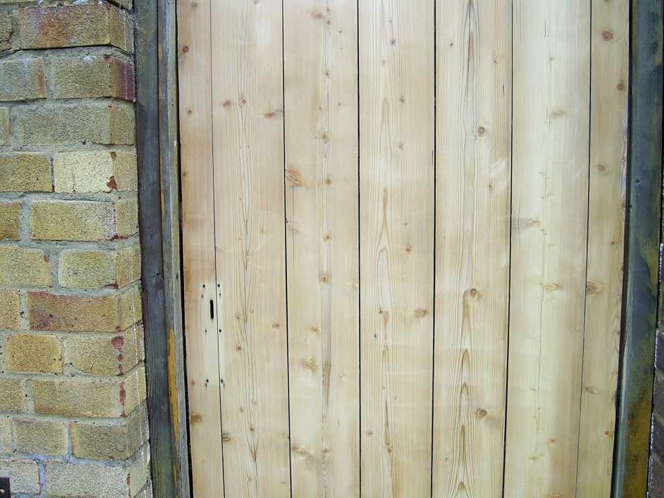 Very weathered gate with deep dog scratches